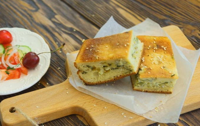 Заливной пирог с капустой на кефире в духовке