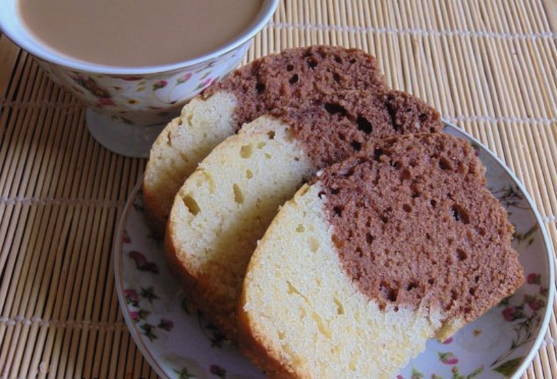 - Смешайте сухие и жидкие ингредиенты, перемешайте. Тесто разделить пополам и в одну сторону добавить какао.
