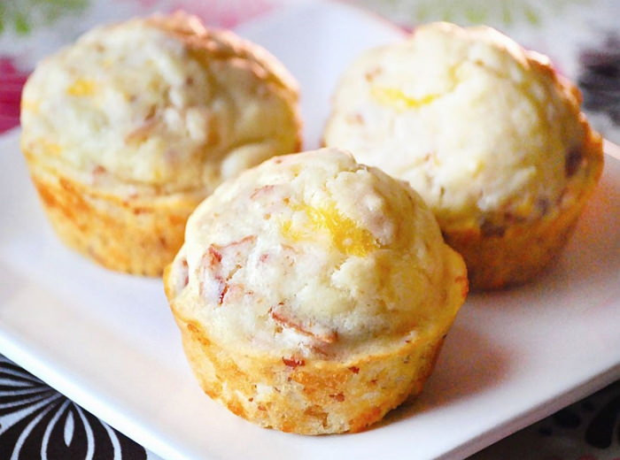 - Тесто разложить по формочкам для кексиков. Выпекать маффины с грудинкой до золотистого цвета, примерно 30-35 минут.
