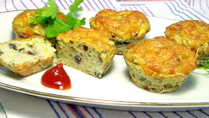 - Ждём пока немного остынет, вытаскиваем из формочек. Закусочные кексы можно подавать к столу.