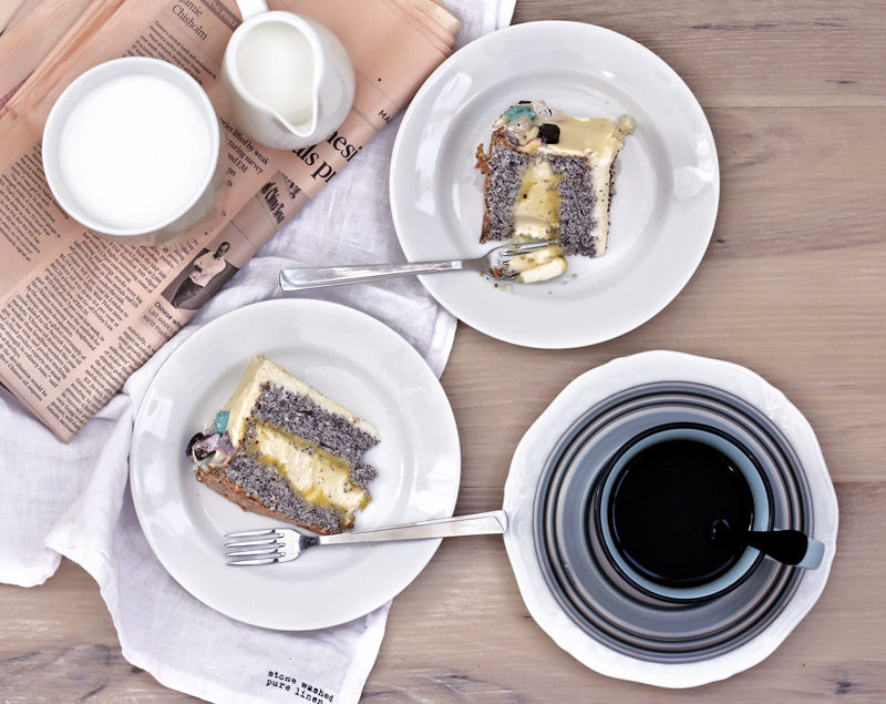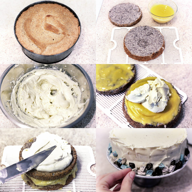 7. Соберите торт и оставшийся крем распределите по поверхности. Курд может вытекать, но это нестрашно. Смешавшись с кремом, он станет только вкуснее.