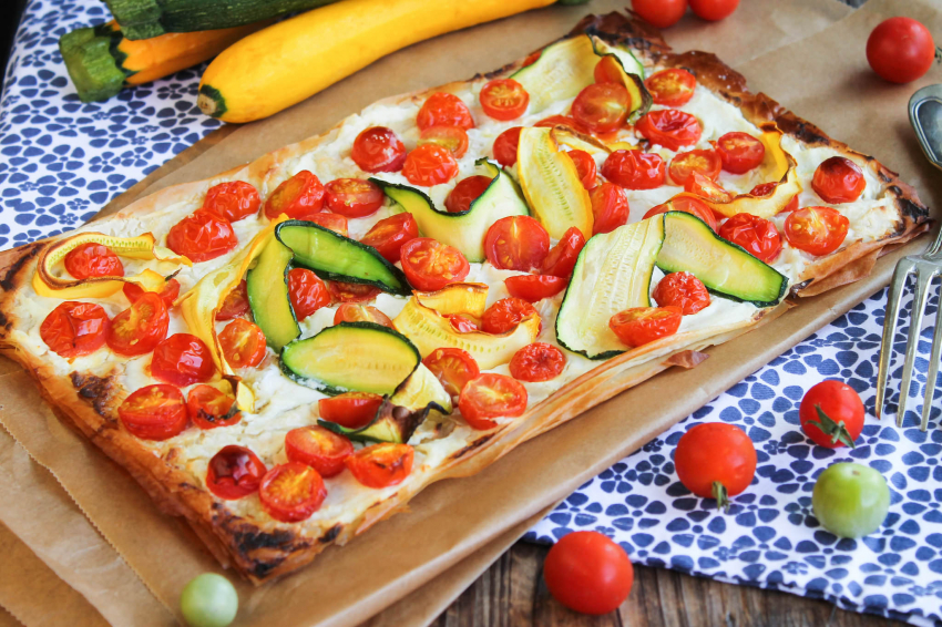 Выпечка из слоеного теста всегда хороша. Но пирог из слоеного теста с помидорами, козьим сыром и цуккини – это вершина вкуса! Яркий цвет томатов и цукини вместе с нежным козьим сыром на хрустящем слоеном тесте делают этот рецепт пирога очень аппетитным и на вид, и на вкус. Попробуйте приготовить пирог из слоеного теста с помидорами, козьим сыром и цуккини, и вы в этом убедитесь.