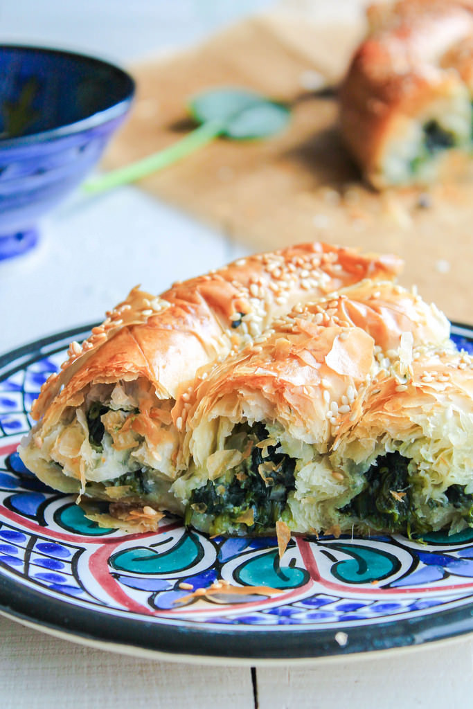 В классическом рецепте бурека или бурекаса для начинки используется мясо. Но современные кулинары давно заменили классическую начинку на сыр, творог, картошку и другие овощи, а также фрукты и зелень. Предлагаем вам приготовить бурек со шпинатом – очень вкусный и ароматный пирог, к тому же вегетарианский! Но вы можете также добавить в рецепт любой сыр, чтобы сделать пирог еще вкуснее.
