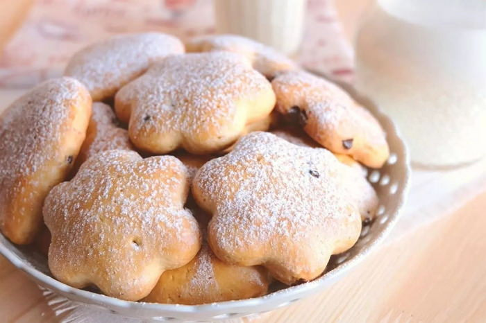 - Духовку разогреваем до 160 градусов. Выпекаем около 30 минут до золотистого цвета. Готовое печенье посыпаем сахарной пудрой.