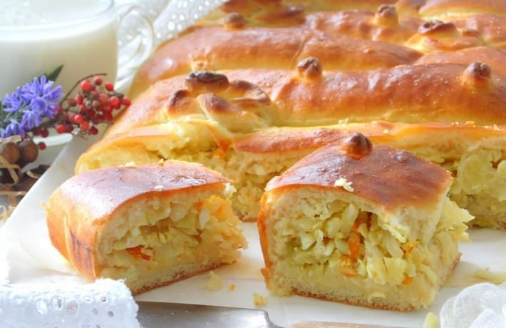 Капустные пироги —универсальное блюдо: их легко печь, они недороги, и накормить ими можно практически любое количество едоков. Да и подать его можно как угодно — и в качестве закуски, и в качестве основного блюда. В русской кухне к капусте в компанию частенько добавляют рубленое вареное яйцо, зеленый лук и грибы — так начинка становится интереснее.