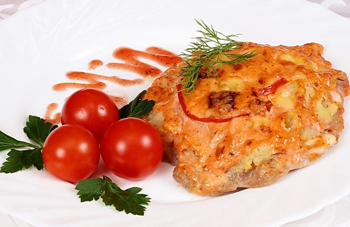 Мясо, замаринованное таким образом, можно запекать в духовом шкафу или тушить на плите. А также, можно мелко нарезать кубиками 0,5 х 0,5 мм для жарки оладьей или котлет.