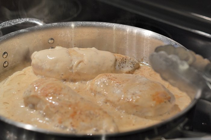 Все ингредиенты тщательно перемешиваем. Для любителей приправ можно добавить одну чайную ложку специи для курицы. Куриное филе в сметанном маринаде отправляем в холодильник на 1-3 часа.