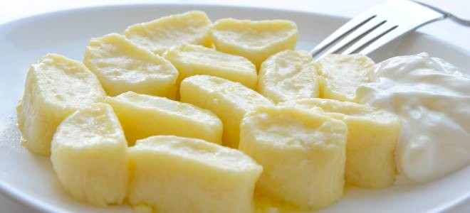 Способ приготовления: Творог выложить в миску, добавить предварительно просеянную муку, яйца, соль, сахар, все перемешать. Добавить в творожную массу сметану. Дать массе постоять минут 30. Скатать из творожной массы колбаску диаметром 3-4 сантиметра.