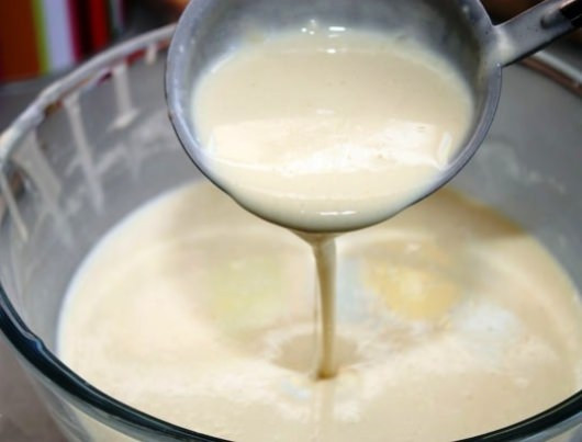 - Взбиваем в отдельной посуде яйца и добавляем их к молоку.