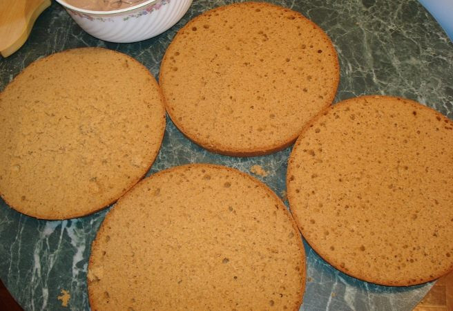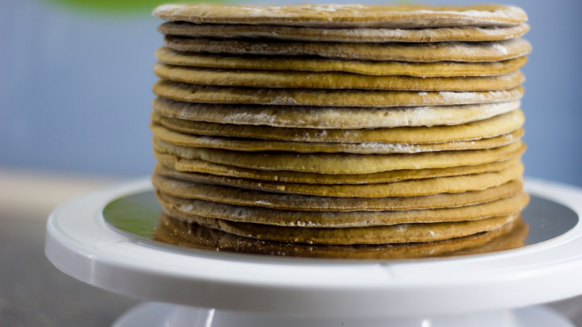 - Пока корж выпекается, оставшееся тесто необходимо оберегать от высыхания, укрыв мокрым полотенцем.
