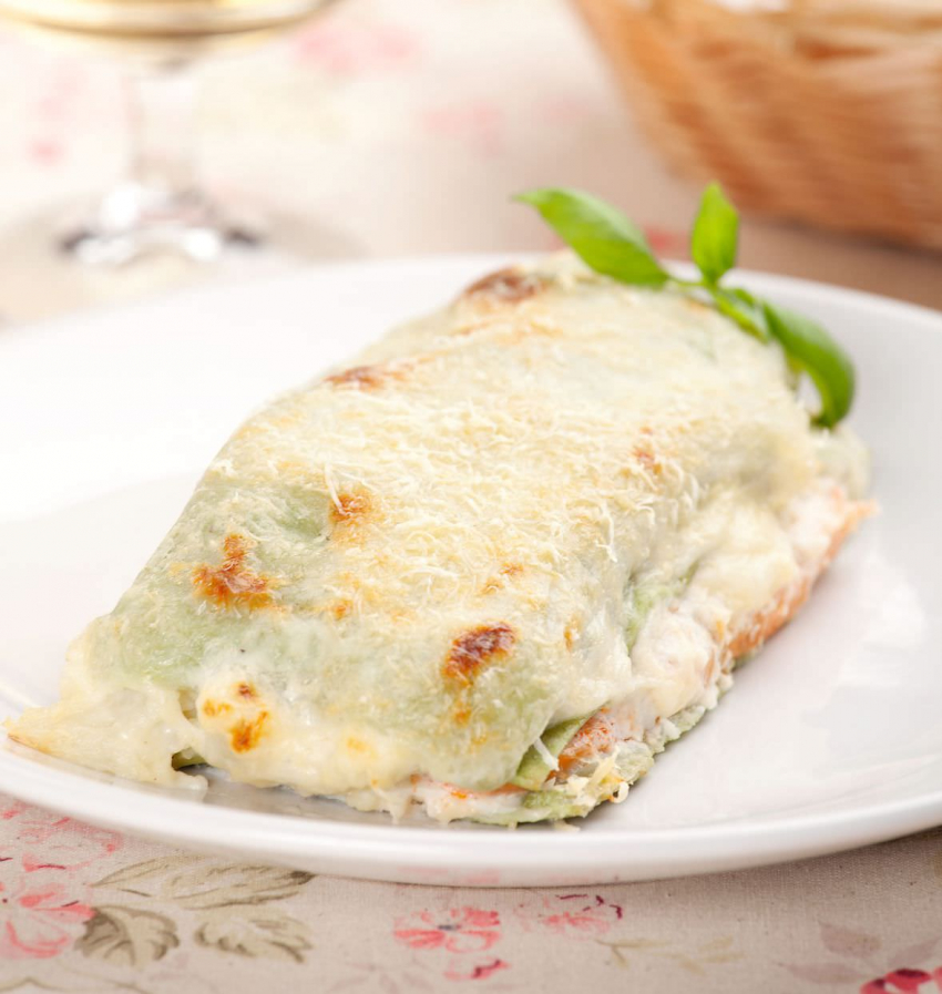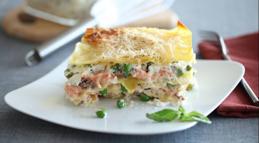 Лазанья с лососем и сыром маасдам