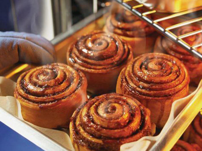 - Булочки выпекают в присутствии посетителей и подают горячими.