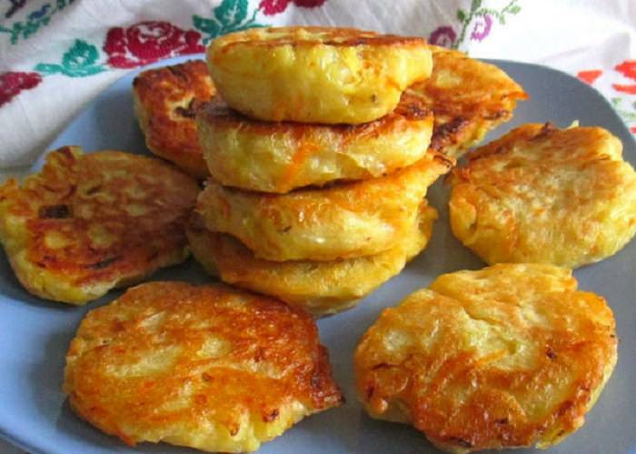 Дрожжевые оладьи на кефире с яблоками и морковью