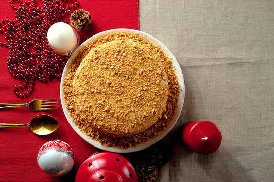 Еще один ценный совет: когда вы начнете собирать медовик, сначала выложите на блюдо немного крема, а потом уложите первый корж, чтобы торт получился сочнее и мягче.