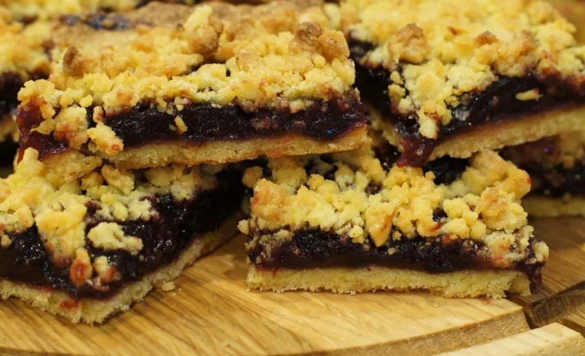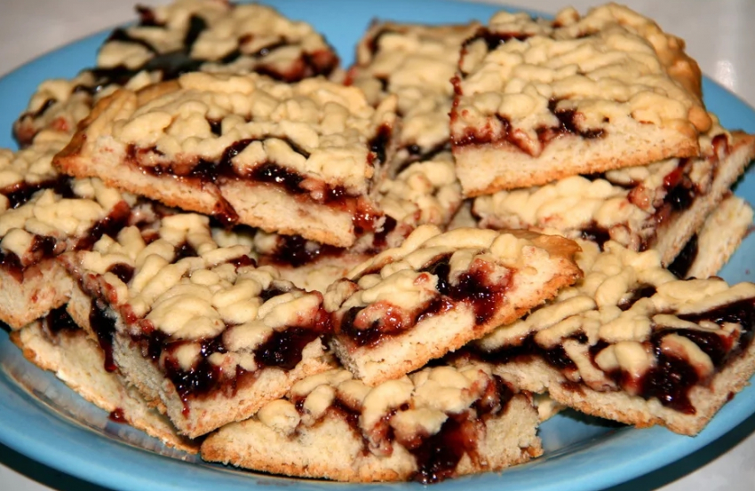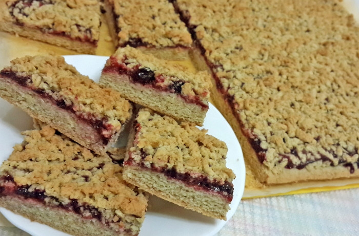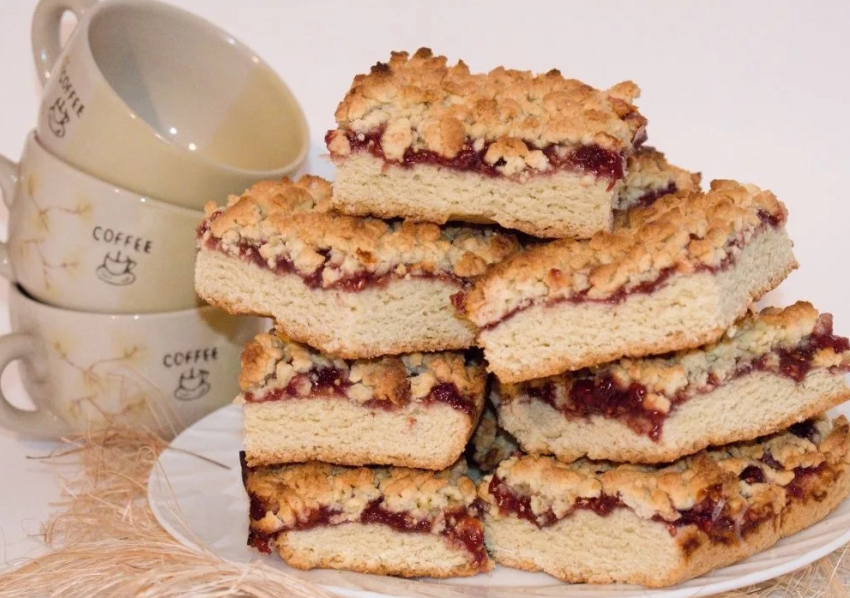 - Полностью остудив наш тертый пирог, нарезаем равными квадратами или прямоугольниками. Венское печенье с вареньем готово! Приятного чаепития!