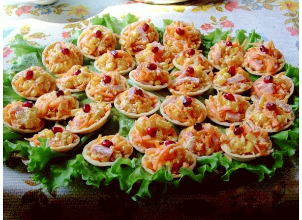 Приготовьте тарталетки с корейской морковью и копченой колбасой на праздничный стол – ваши гости останутся довольны. Хлопот минимум, а закуска получается очень эффектная и вкусная.
