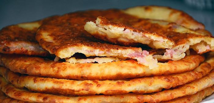 Домашние сырные лепешки с ветчиной