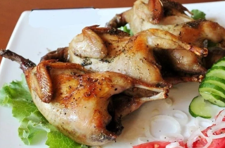 - Через 8 – 10 минут, когда спинки и птичек начнут подрумяниваться, переворачиваем их на другую сторону и поливаем оставшимся маринадом. Доводим до готовности еще около 10 минут. Подаем со свежей зеленью.