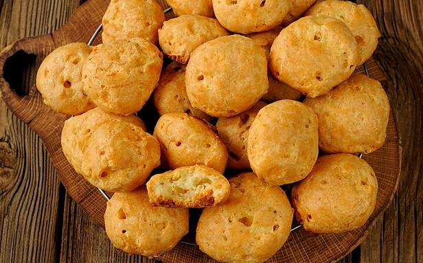 Добавьте 3/4 всего сыра и лук, перемешайте. Формировать гужеры лучше с помощью кондитерского мешка. Если у вас его нет, используйте ложку. Оставшимся сыром посыпьте сверху шарики и отправьте их в духовку на 10 минут. Уменьшите температуру до 190 градусов и выпекайте еще 25 минут до золотистого цвета.