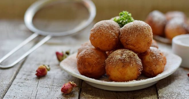Отщипываем кусочки теста, скатываем шарики и обваливаем их в муке или в сухарях. Сильно прогреваем сковороду с большим количеством растительного масла и обжариваем шарики до румяной корочки.