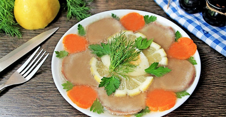 Яркое заливное из языка говяжьего с лимоном