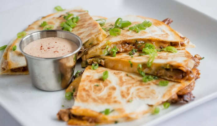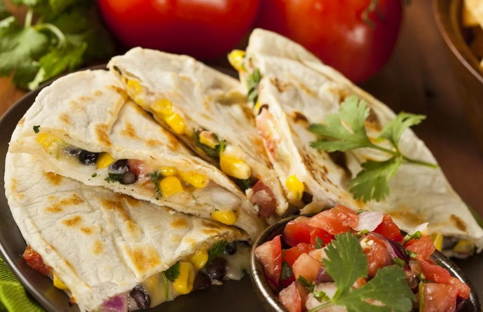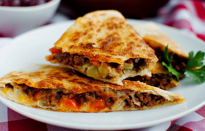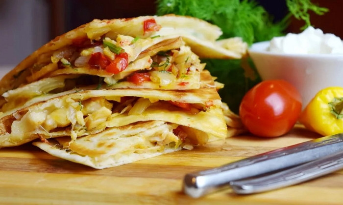 Кесадилья — мексиканская закуска быстрого приготовления, какая состоит из сложенных вдвое лепёшек-тортилий (пшеничных либо кукурузных), поджаренных на сковороде, с начинкой из овощей, мяса либо птицы. Необходимая составная часть начинки для кесадильи — сыр. И лучший сыр тот, который эффективно плавится. Главное отличие от похожих блюд — буррито или энчилада — заключается в том, что тортилью складывают пополам, а не заворачивают в неё начинку.