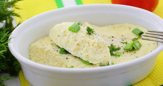Время приготовления омлета может колебаться в зависимости от модели микроволновки, а также выставленной на ней мощности. Появление золотистой корочки свидетельствует о готовности омлета. Воздушный омлет в микроволновке готов. Подавать его можно прямо с посудой, в которой он готовился, или же извлечь из нее, переложить на тарелку и нарезать на кусочки.