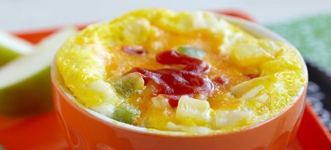 Форма для омлета в микроволновке может быть, в принципе, любой, можно приготовить в кружке, в стакане, даже в пакете. Также неплохо получается нежный омлет в силиконовой форме в микроволновке. Готовится такое блюдо очень быстро — за 2 минуты, поскольку яичная масса будет распределена тонким слоем.