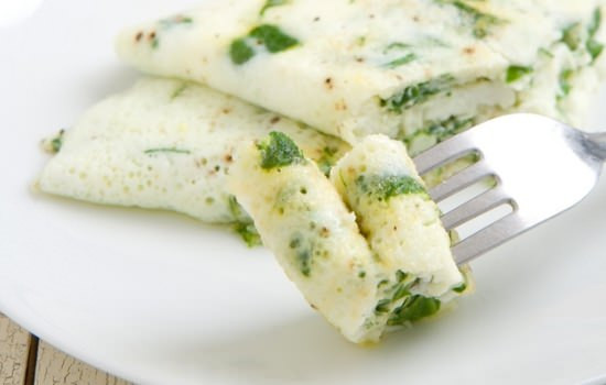 Чтобы снизить калорийность и жирность блюда, куриные яйца можно класть не со всеми желтками. Например взять белки от 4 яиц, а желтки только от 1 — чисто для вкуса. Омлет из 3 яиц — почти 300 ккал, а такой же по объёму омлет из 5 белков и 1 желтка — около 150 ккал.