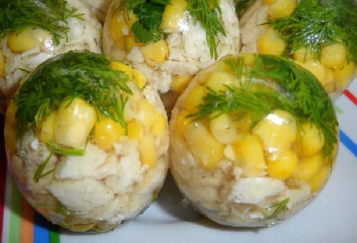 Заливные яйца в скорлупе с отварной курицей
