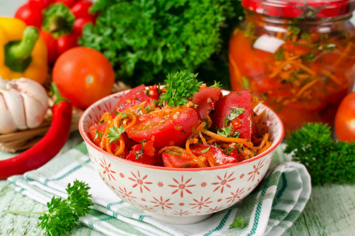 Острые помидоры маринованные по корейски – быстро и очень вкусно!
