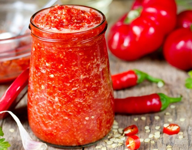 Ароматная и яркая приправа станет украшением любого стола. Аджика хорошо сочетается с первыми и вторыми блюдами, горячими закусками и блюдами, подающимися холодными.