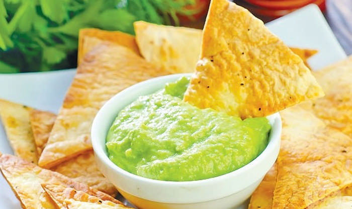 Подавать гуакамоле принято с кукурузными чипсами начос к пиву, хотя его прекрасно можно сочетать с подсушенным хлебом, использовать в сэндвичах, сочетать с морепродуктами и мясом. А чипсы можно легко сделать из подсушенного в духовке армянского лаваша.