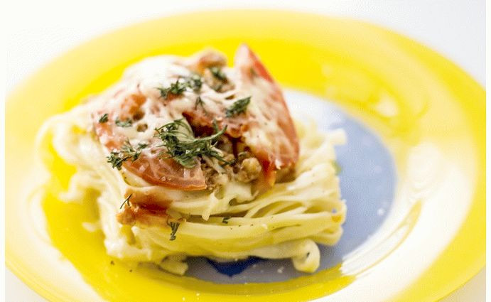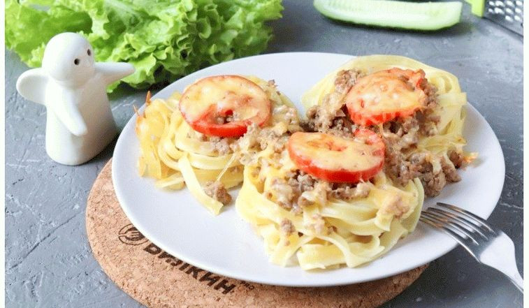 Макаронные гнезда с фаршем