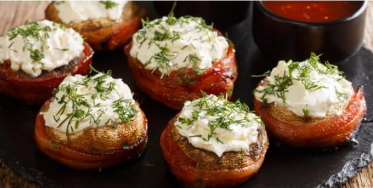 Рецепт ароматных шампиньонов в беконе
