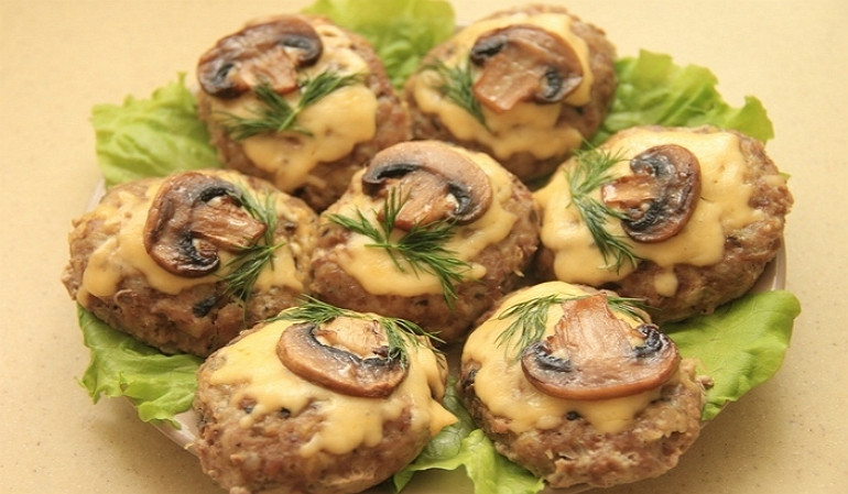 Мясные котлеты с шампиньонами в духовке