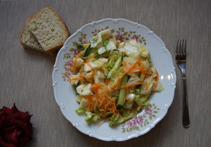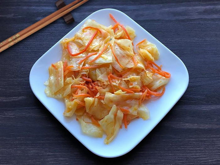 Такая рецептура отлично подойдет для быстрого приготовления чего-то необычного к столу, если в доме нет засоленной на зиму капусты. Это отличная и быстрая замена, которая на любом столе надолго не задержится.