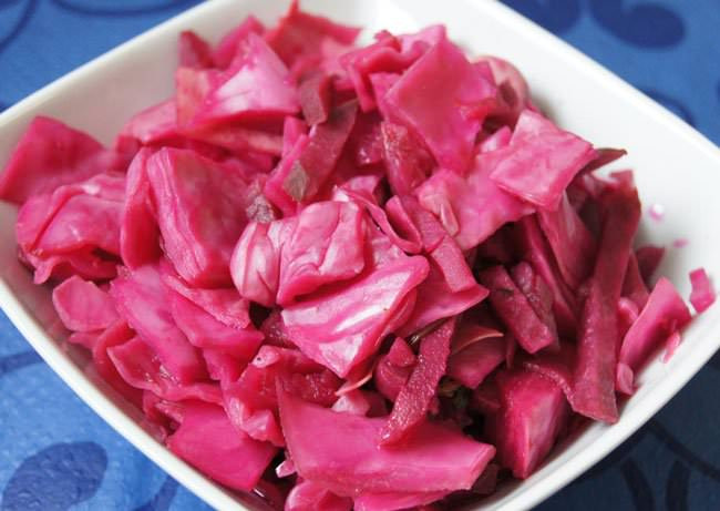 Чтобы сделать маринад потребуется все ингредиенты (кроме уксуса) смешать и прокипятить в течение 10 минут, в конце добавить уксус и перемешать. Затем залить овощи маринадом и оставить на 8 часов настаиваться при комнатной температуре. Поставить в холодильник на такое же время, и после этого капуста со свеклой уже будет готова к употреблению. Хранить маринованную закуску необходимо в холодильнике.