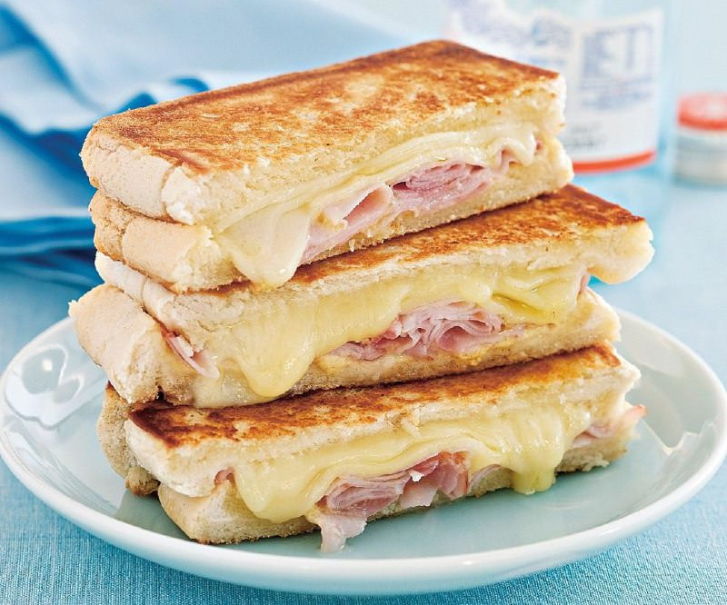 Взбейте яйцо с молоком вилкой, посолите, поперчите. Разрежьте ломтики хлеба по диагонали и обмакните треугольники в яичную смесь. Выложите моцареллу и ветчину на два кусочка хлеба, прикройте оставшимися ломтиками. Обжарьте на растительном масле с обеих сторон до золотистого цвета. Можете приготовить гренки в духовке или на гриле. Выложите на тарелку и дополните это совершенство в итальянском стиле веточкой базилика.