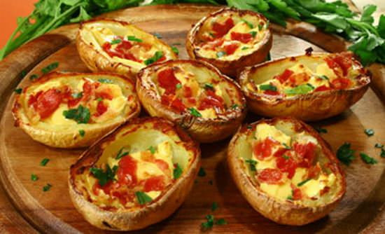 В яичную массу положите тертый сыр с беконом и зеленью. Перемешайте тщательно. Наполните булочки-лодочки начинкой и поставьте в духовку на 20-25 минут (температура — 180-190 градусов). Лодочки с беконом, яйцом и сыром готовы!