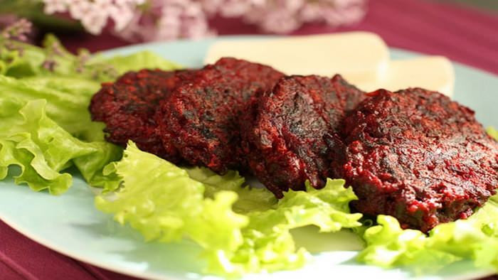 Свеклу, очистив, натереть и примешать к морковной массе. Посолить по вкусу и сформовать из массы котлетки. Выложить котлеты на противень, смазанный сливочным маслом, и отправить в духовку. Запекать котлеты при 200 С до зарумянивания. Готовые котлеты из свеклы и моркови подавать к столу, посыпав рубленой зеленью.