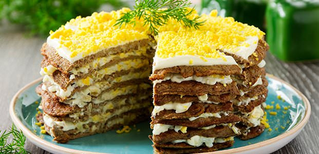 Торт с плавленым сыром и печёнкой