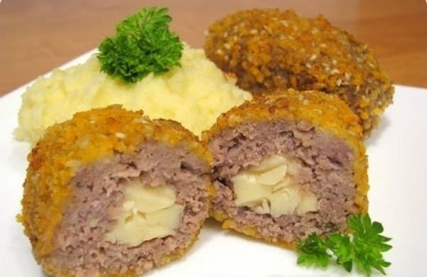 Сыр можно добавлять непосредственно в котлетный фарш или кладётся кусочком, получается типа зраз с расплавленным внутри сыром — что может быть вкуснее.