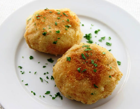 Затем измельчаем рыбу, лук и картофель. В полученную массу добавляем яйца, оливковое масло, соль, перец и пряности. Все перемешиваем. Формируем котлетки. Из полученного фарша выходит около 12-14 котлеток. А далее кто как любит. Эти котлетки можно приготовить в пароварке, можно обжарить на сковороде или во фритюре, а можно запечь в духовке.