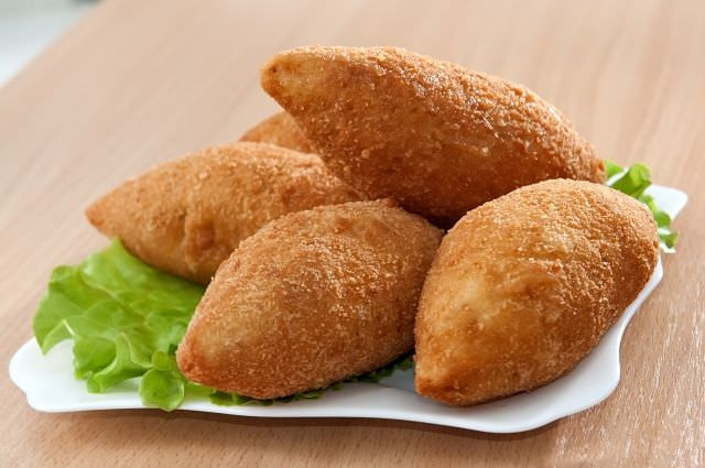 Сворачиваем филе очень аккуратно так, чтоб не было дырочек. Обмакиваем в яйце, затем в муке и сухарях. Потом опять в яйце и сухарях. Получается двойная панировка, чтоб масло не вытекло. Наливаем в котелок или посуду с антипригарным дном подсолнечное масло и обжариваем с двух сторон минут по пять до румяной корочки. Затем отправляем в духовку на 15 минут.
