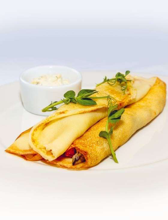 Чрезвычайно сытным рецептом блинов с сыром является продемонстрированный ниже рецепт. Такое блюдо можно подать на завтрак за семейным столом, а также брать с собой для употребления во время обеденного перерыва на месте работы.