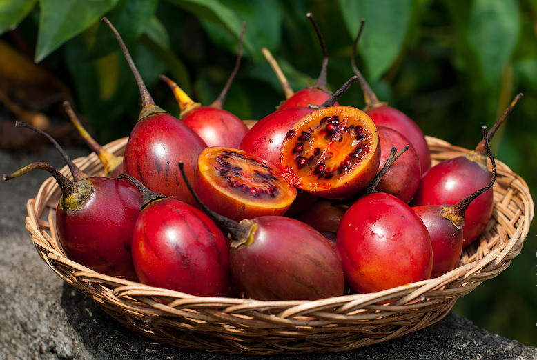 Тамарилло – фрукт с виду похожий на томат, но мякоть напоминает маракуйю, по вкусу он похож на что-то среднее между ними.