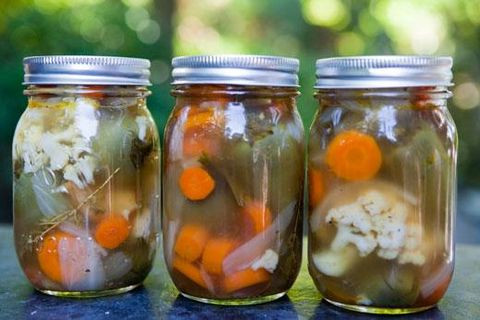 Для изготовления солений используют овощи примерно одинакового небольшого размера. Крупные корнеплоды нужно измельчить, твердые ингредиенты предварительно отварить или бланшировать.Некоторые рецепты рекомендуют делать сочетания фруктов и овощей, очень вкусно есть ассорти из яблок, винограда, груш, кабачков и кукурузы.
