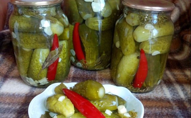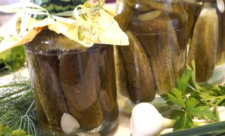 Главное следовать рецепту и использовать назначенное количество ингредиентов. По вкусовым качествам и необходимым полезным свойствам эти овощи не уступают огурцам со стерилизацией.