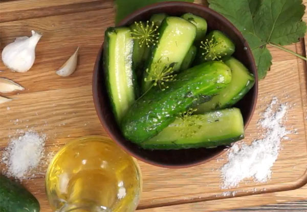 Перед приготовлением овощи проверяются на наличие внешних повреждений, огурцы с трещинами и темными пятнами не подходят. Использование перезревших огурцов не рекомендуется: они получаются мягкими и пресными.
